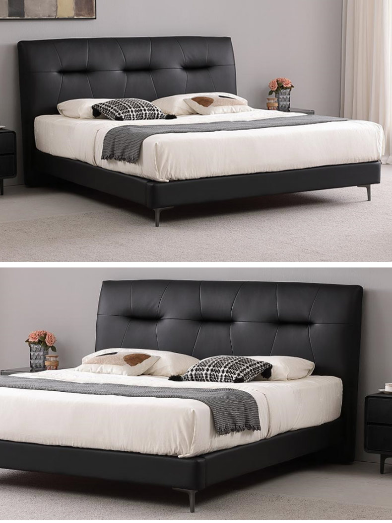 维利品尚 现代简约 接触面头层真皮+高密度海棉+实木内架+10公分钢木排骨架 1.5米床