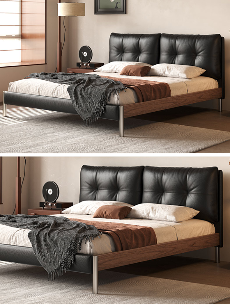 维利品尚 现代简约 接触面头层真皮+填充:竹炭海绵+实木内架+实木脚 1.8米床