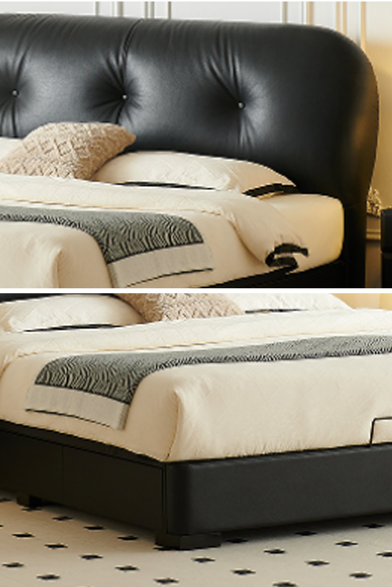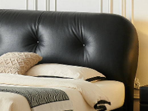 维利品尚 现代简约 接触面头层真皮+填充:竹炭海绵+实木内架+实木脚 1.8米床
