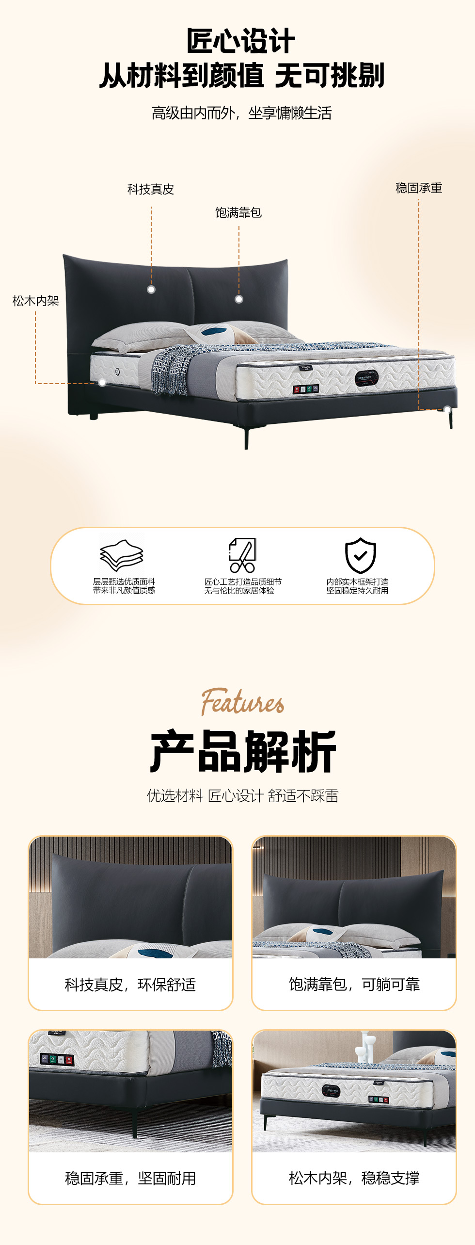 【套餐专享价】每屋优享系列 现代简约 松木内架+高回弹海绵+科技真皮 1.8米床