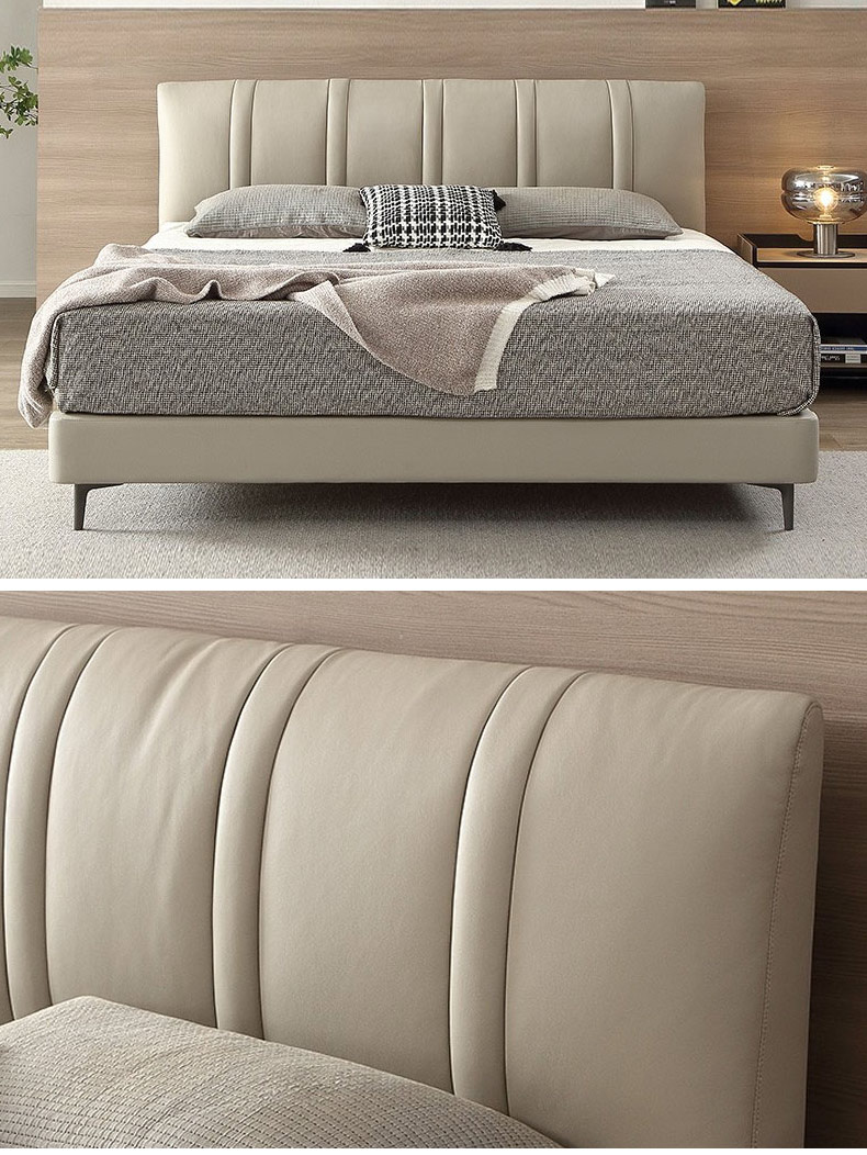 左右家居 现代简约 接触面头层黄牛皮+碳素钢脚+木板床身+高回弹性海绵填充 米白色 1.8米床¥5305