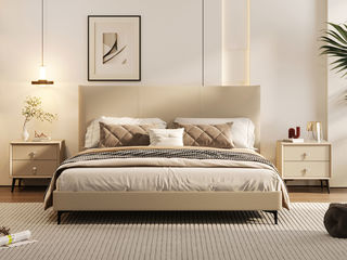 帝幔佧 现代 接触面真皮 进口松木内架 高回弹海绵 静音床板 真皮床 1.8米床