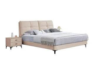 A系优选 现代简约 接触面头层真皮+仿真皮+落叶松木+多层实木板+高回弹海绵+碳素钢五金+钢木排骨架 1.8米床