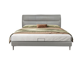 A系优选 现代简约 接触面进口头层黄牛皮+高回弹海绵+实木+10分排骨架+合金刚脚 深灰 1.8米床(不可定制高箱)