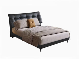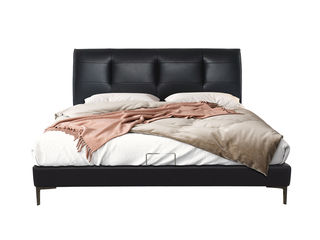 A系优选 现代简约 接触面头层牛皮+仿皮+实木框架+10公分钢木排骨架+黑色床脚+松木+黑色角码 1.8床