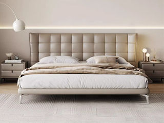 维利品尚 现代简约 接触面头层真皮+实木内架+15公分排骨架+镀铬银脚 1.8米床