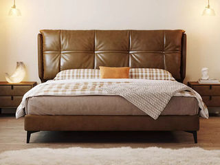 维利品尚 中古风 接触面头层真皮+填充:竹炭海绵+实木内架+15公分排骨架+实木脚 1.8米床