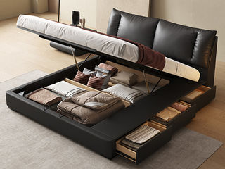 维利品尚 网红 接触面头层真皮+填充:竹炭海绵+实木内架+15公分排骨架+实木脚+气压高箱带三抽 1.8米床