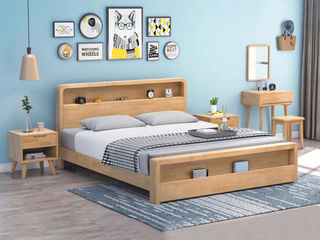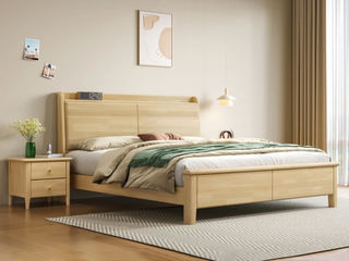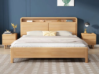 简森曼 北欧风 床头床尾脚为橡胶木靠背为皮艺填充海绵 原木色 1.8米床 【实木拼接工艺】