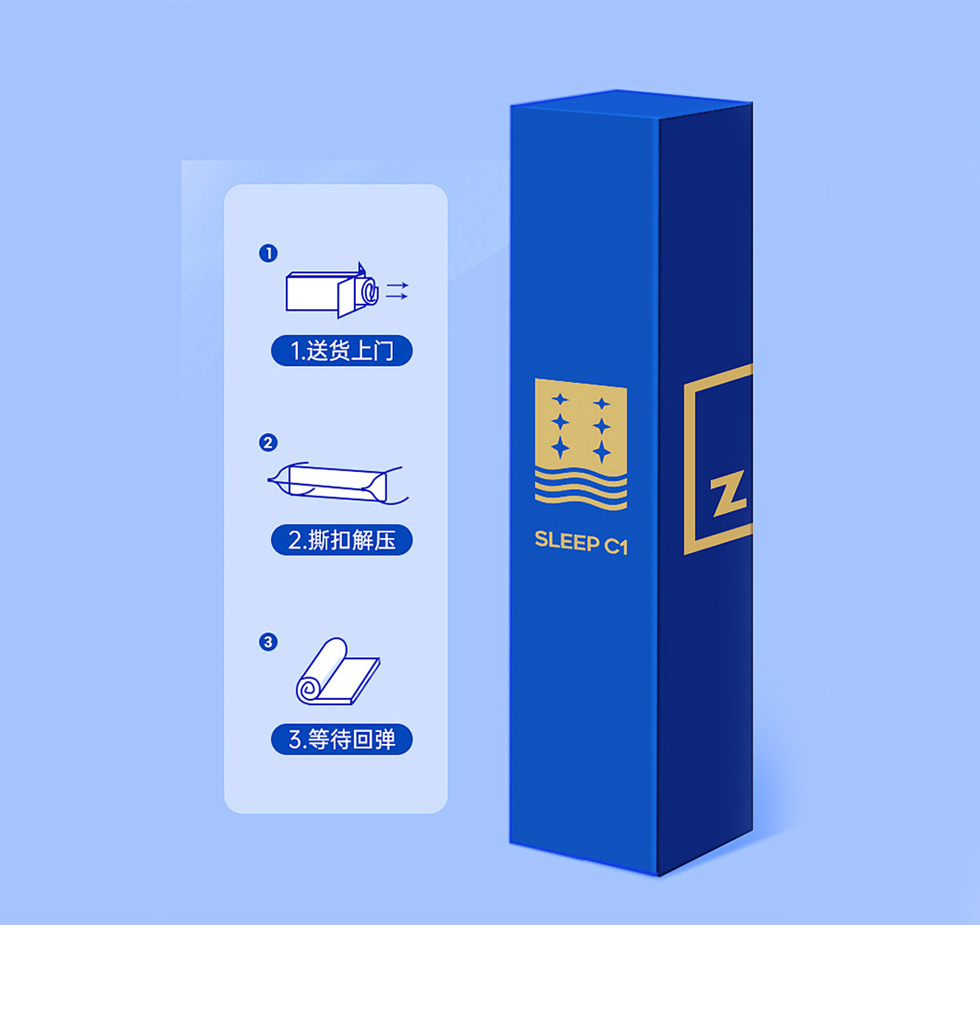 【每屋睡眠】每屋美搭 亲肤针织面料(全拆工艺)天然乳胶侧面:亲肤绒布底面:防滑布 1米床垫 压缩卷包 80mm薄垫 正面适中 反面偏硬