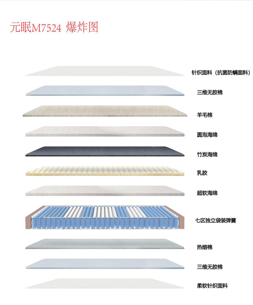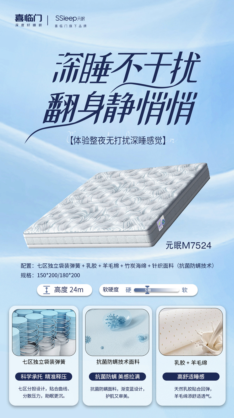 喜临门 七区独立袋装弹簧+乳胶+羊毛棉+竹炭海绵+针织面料(抗菌防螨技术) 单面 1.5*2米 床垫 包邮