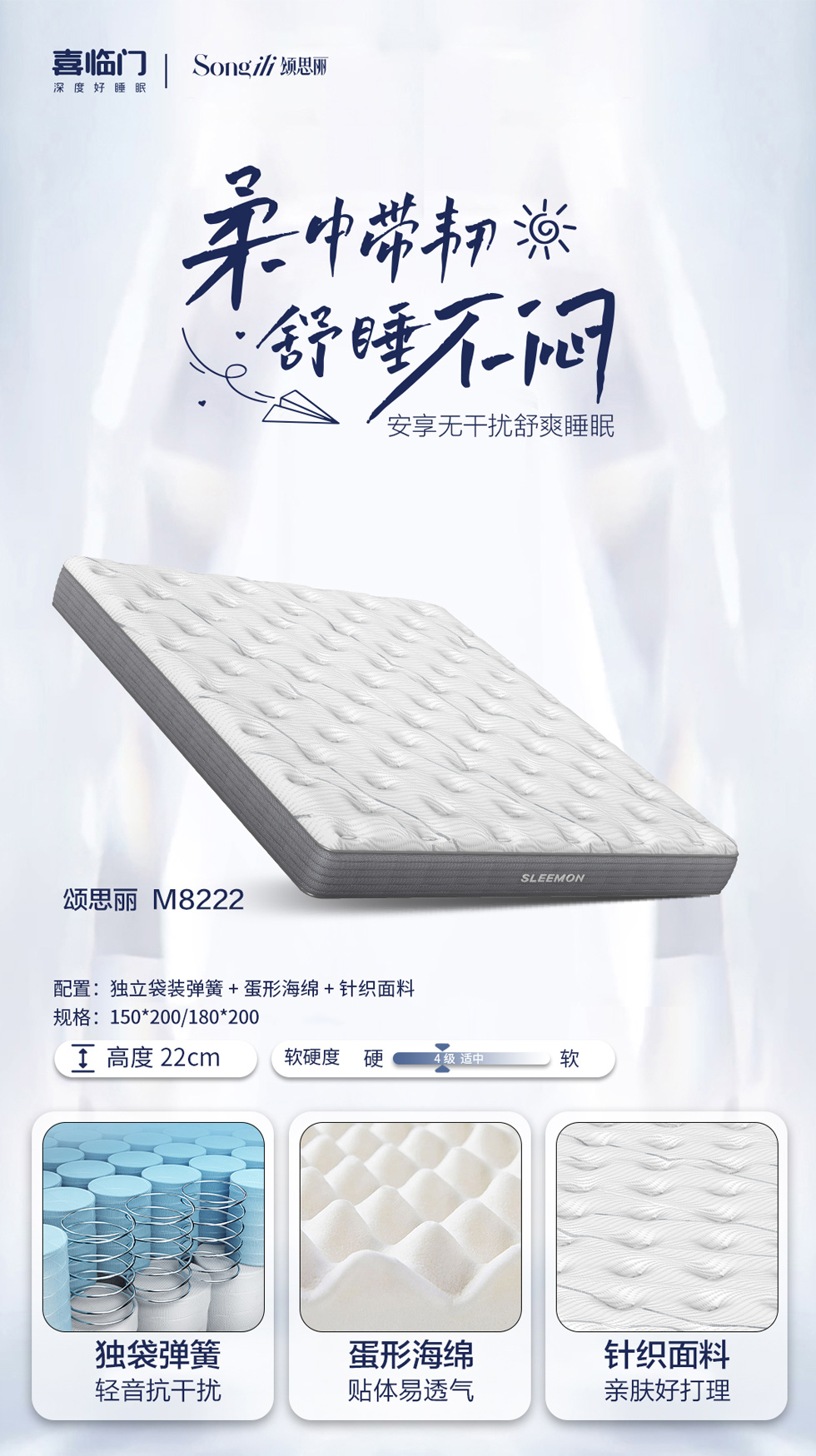 喜临门 独立袋装弹簧+3D材料+抗菌防螨棉+针织面料(抗菌防螨技术) 单面 1.8*2米 床垫 包邮