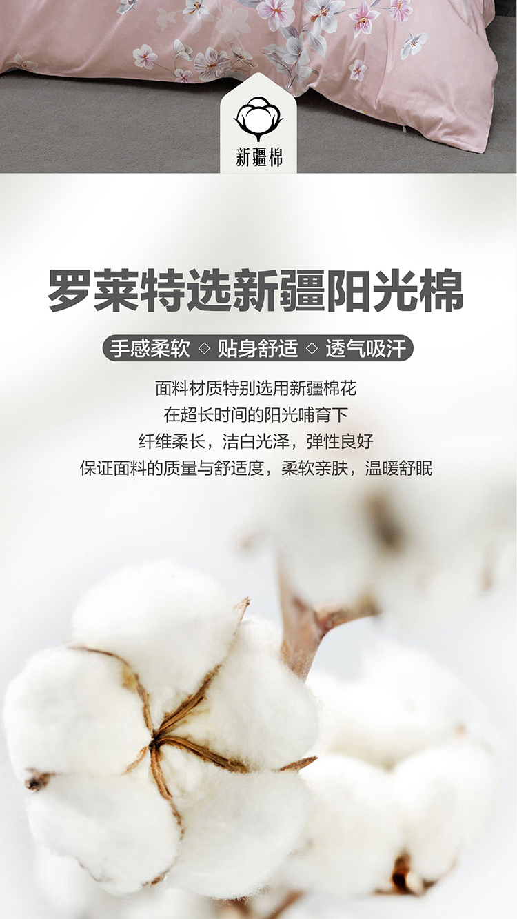罗莱家纺 简粹60S全棉贡缎四件套 包邮 2米