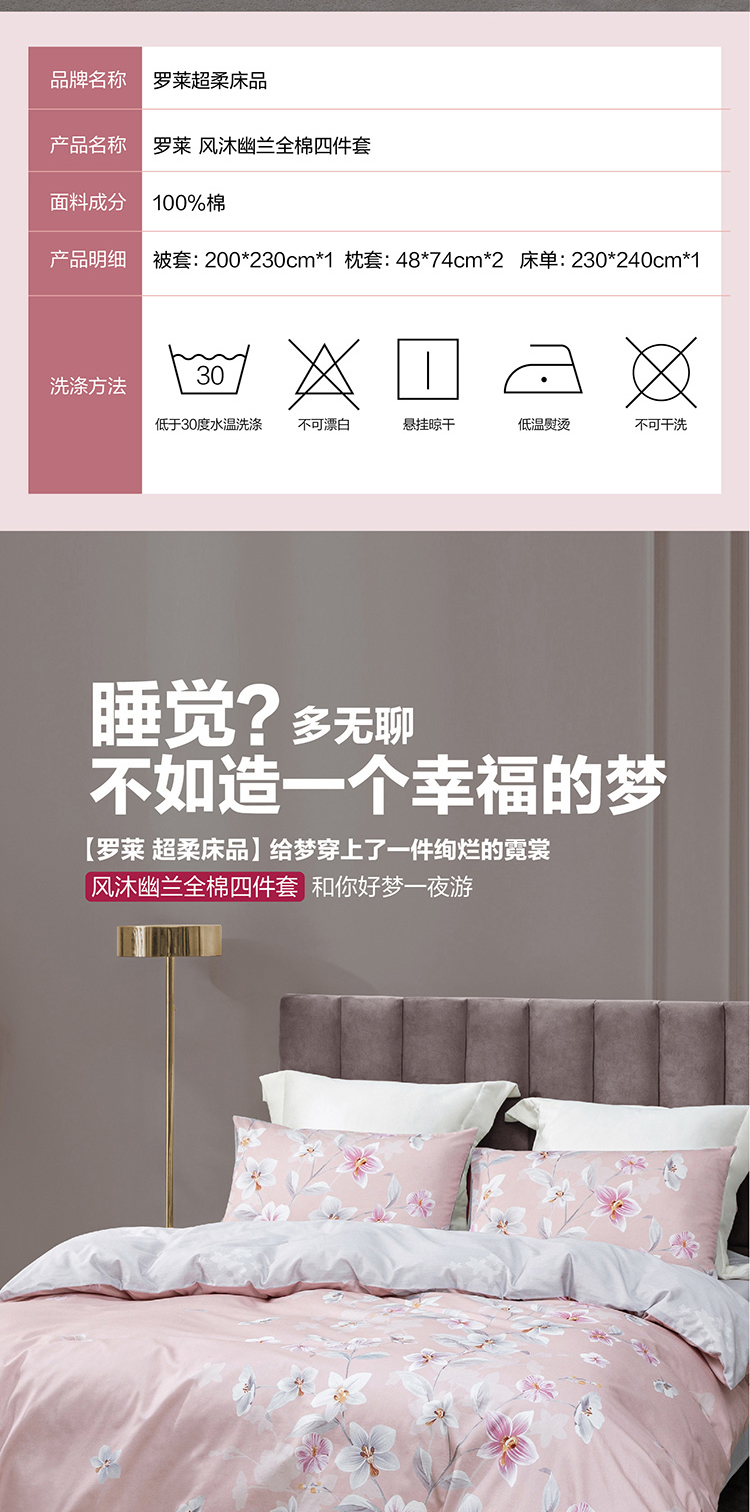 罗莱家纺 暗香疏影全棉四件套 包邮 2米