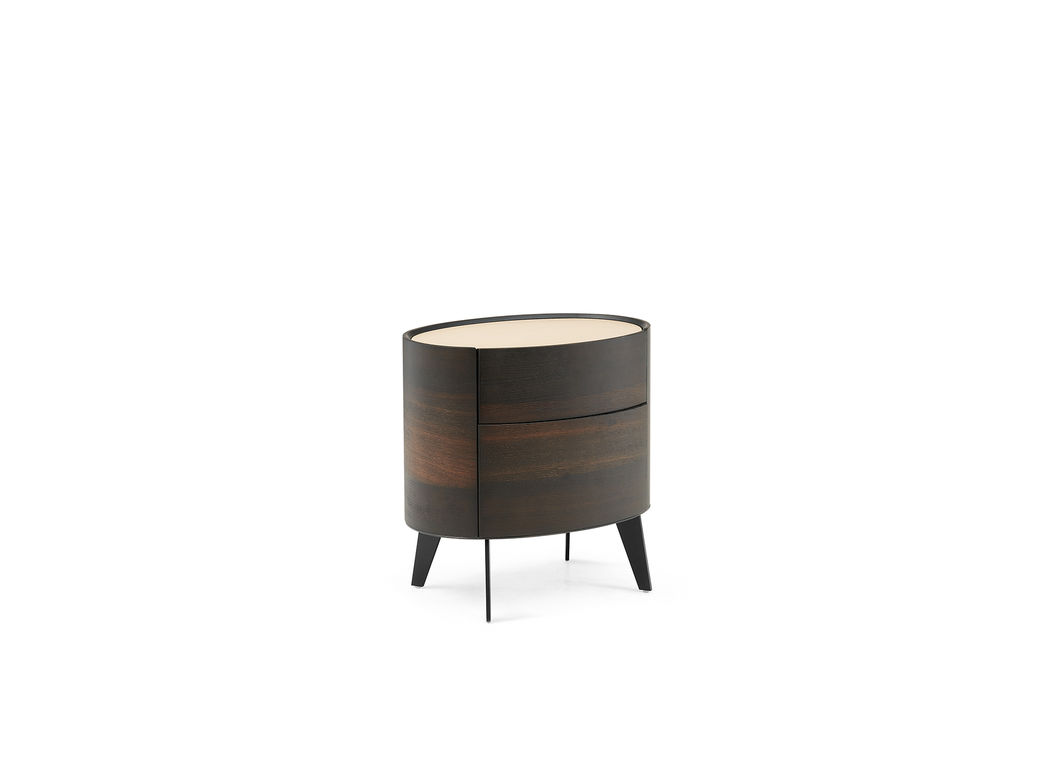 Milos米洛斯 极简 天然烟熏木饰面 陶瓷岩板 E1级高纤板 环保水性漆 不锈钢黑拉丝脚 床头柜1个