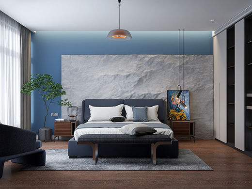 缔造 极简 钢化灰玻+E1级高密度板喷烤漆 深灰蓝 床头柜1个