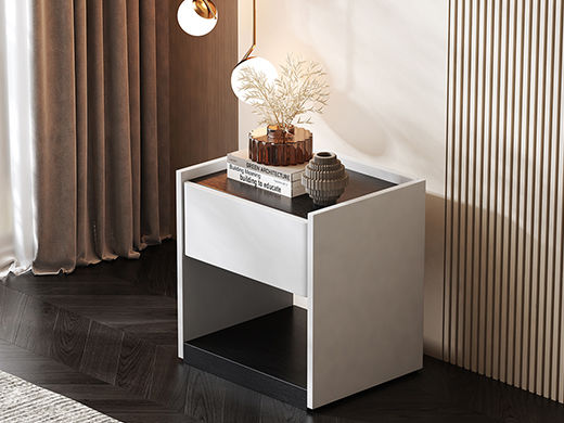 希奥 极简 中纤板贴木要皮面板玻璃面 床头柜1个¥902