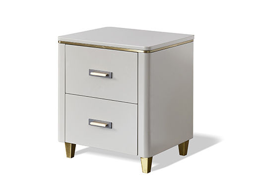 拜洛迪 轻奢 板木结合+白亮光油漆+五金拉丝香槟金不锈钢 亮光白 床头柜1个¥1165