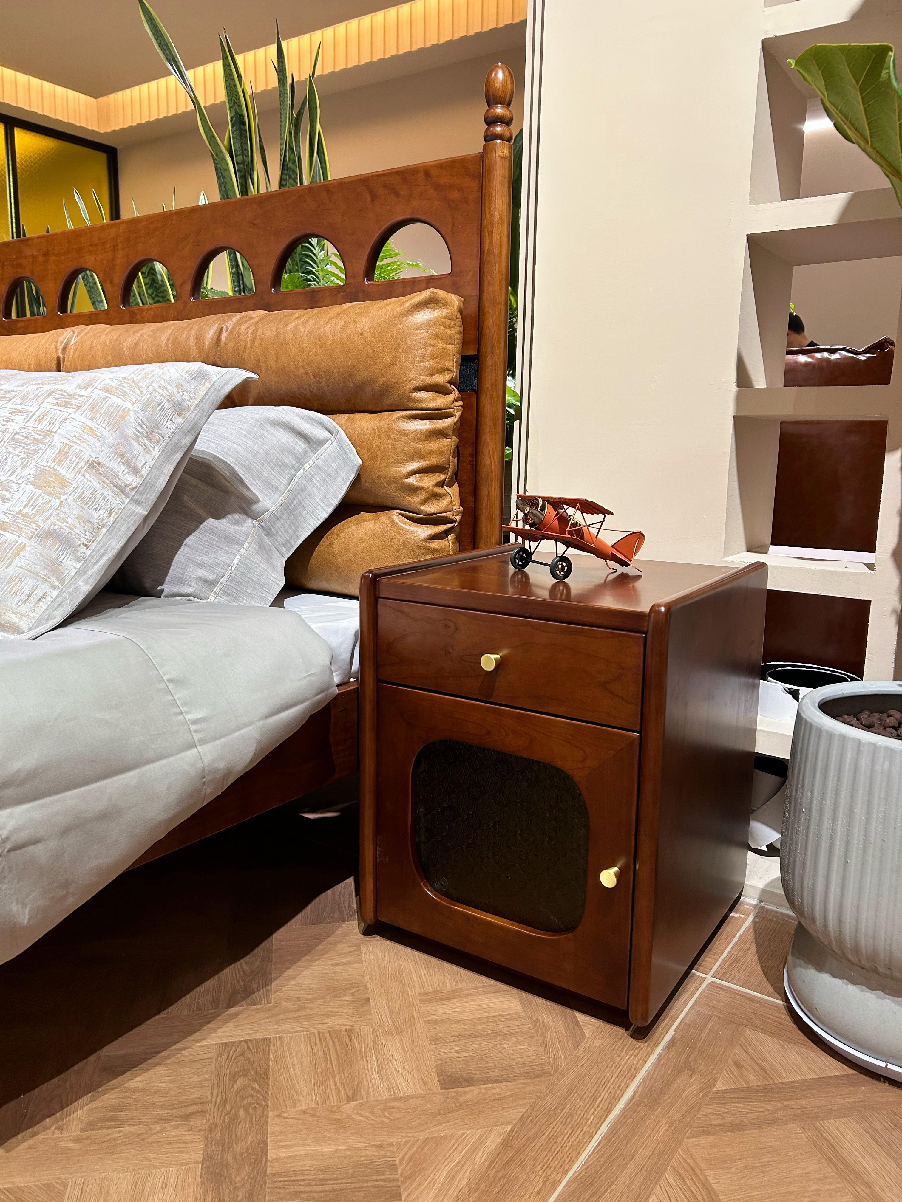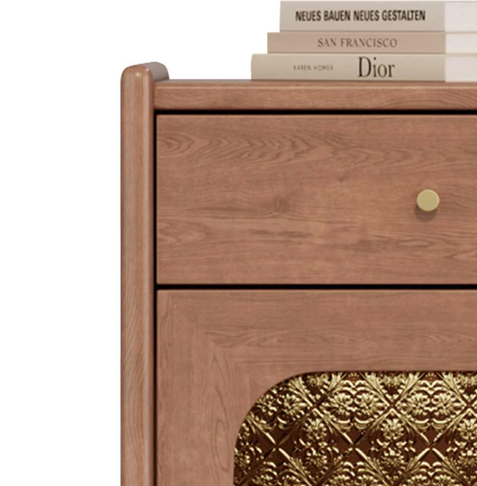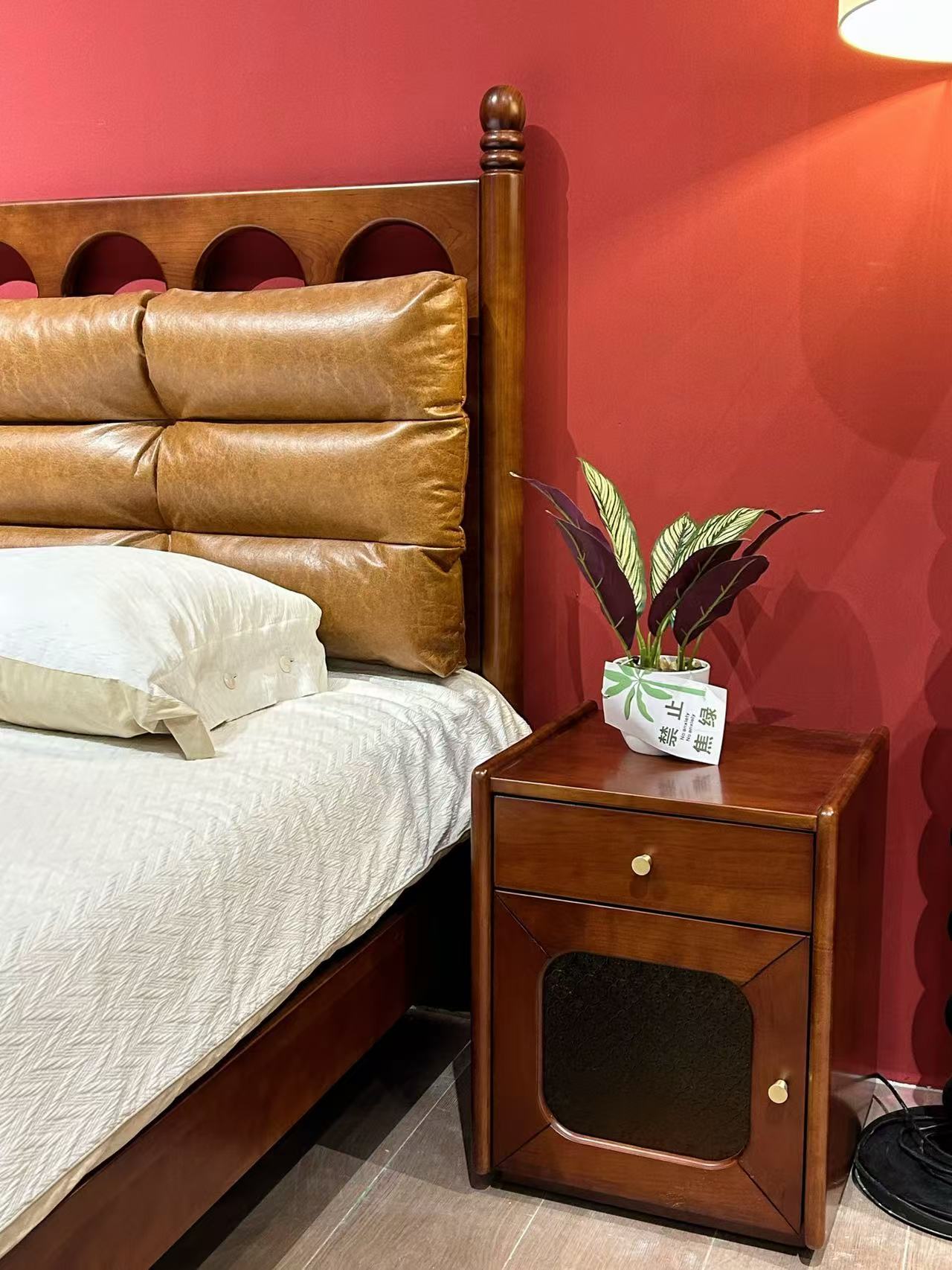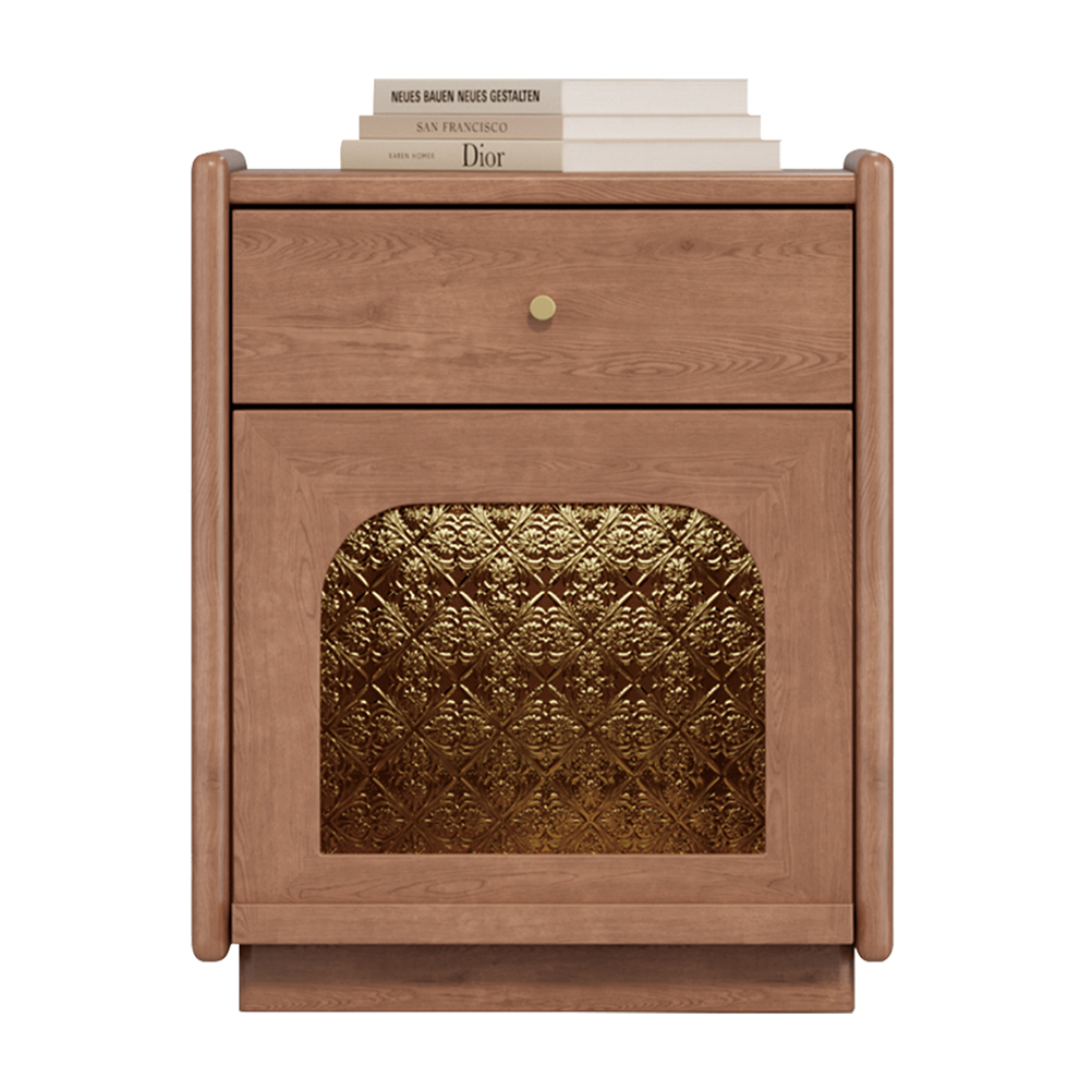 中古·森 网红 中古风 进口樱桃木+多层实木板+实木导轨 床头柜1个
