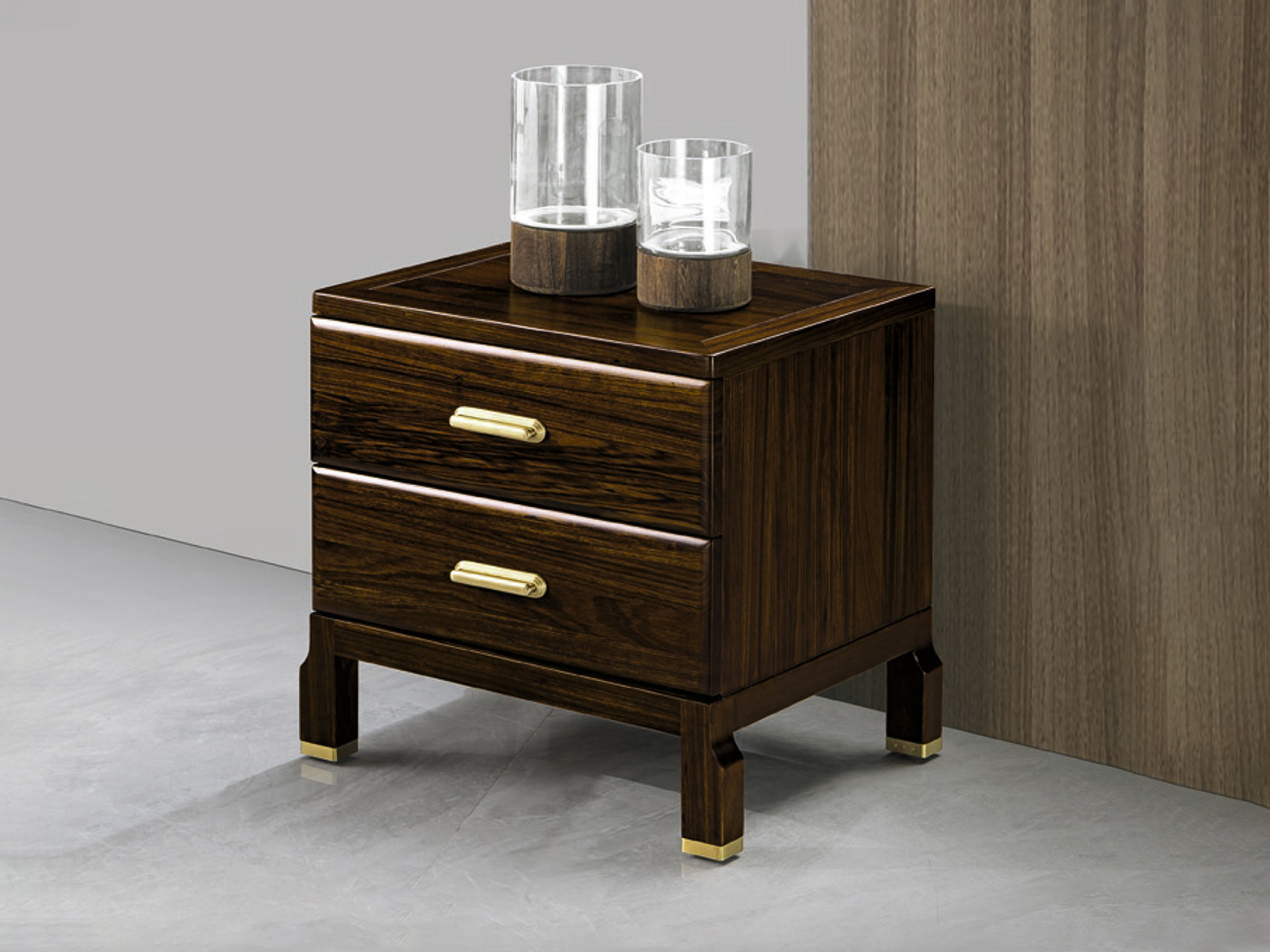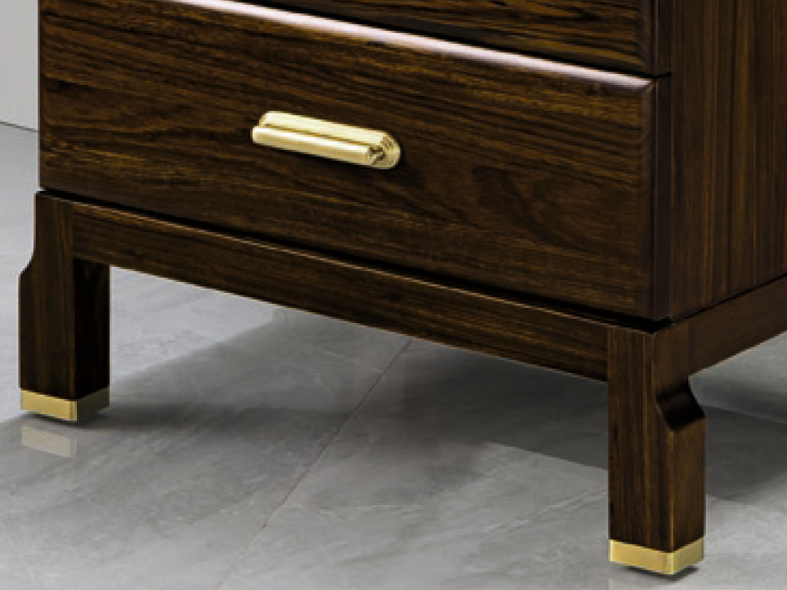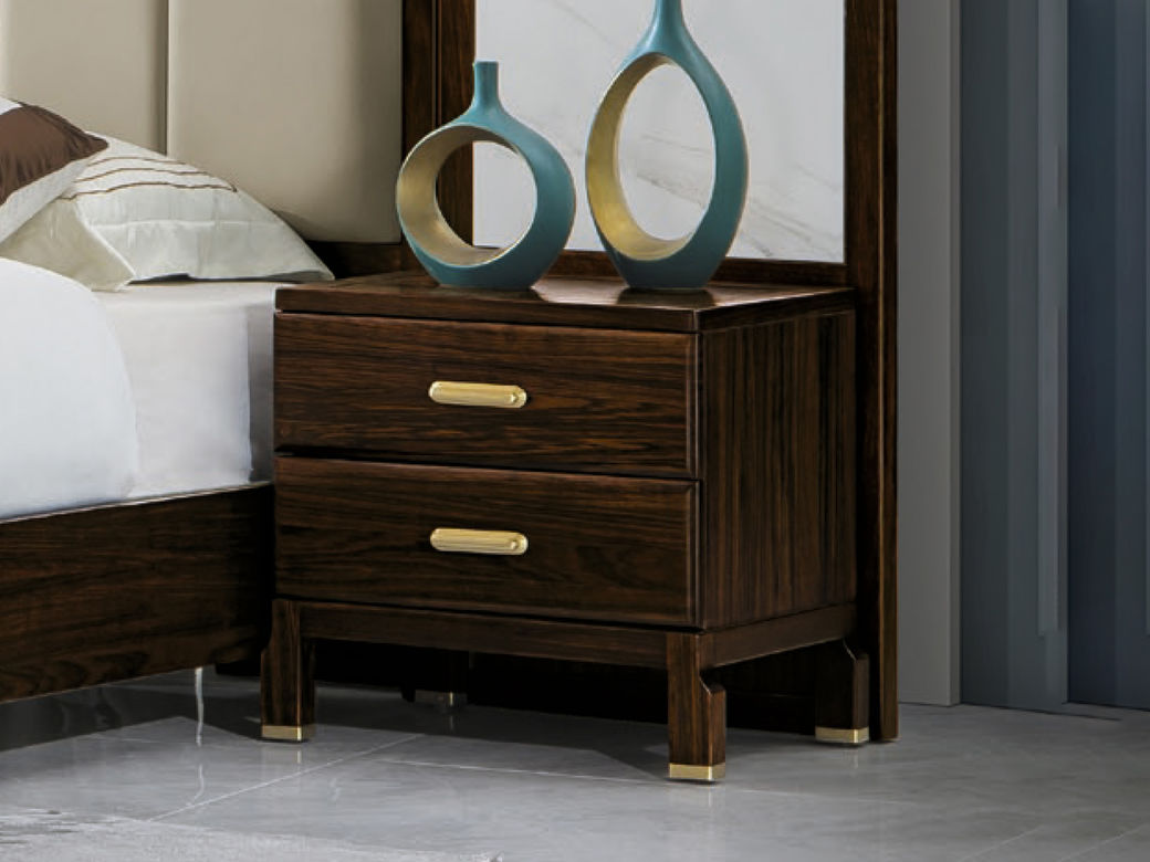 美檀家居 新中式 进口黑檀木+多层实木板+静音导轨+电镀五金 黑檀色 床头柜1个