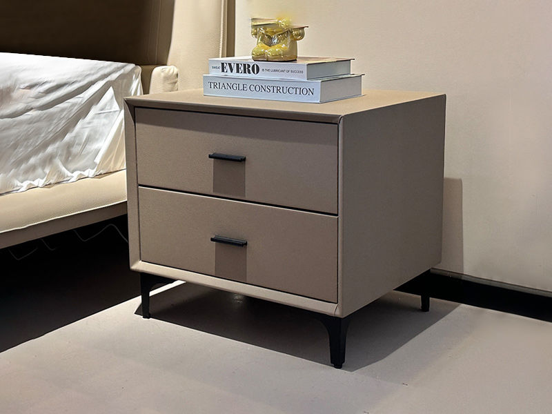 洛萨 现代简约 中纤板+仿皮+碳素钢脚+实木抽屉 床头柜¥704
