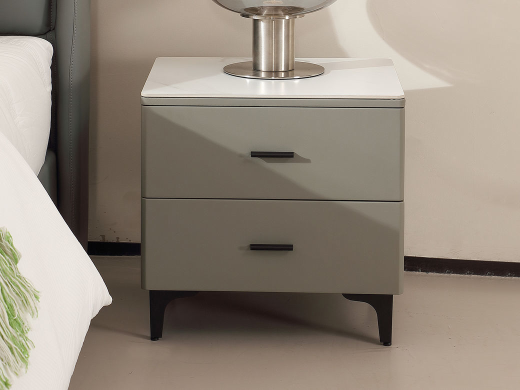 洛萨 现代简约 中纤板+仿皮+碳素钢脚+实木抽屉 床头柜¥704