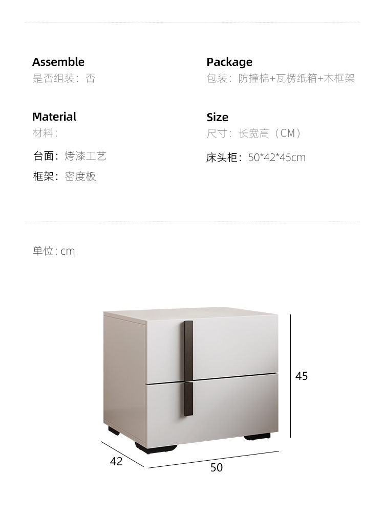 帝幔佧 现代 E1高密度板+喷漆 床头柜1个