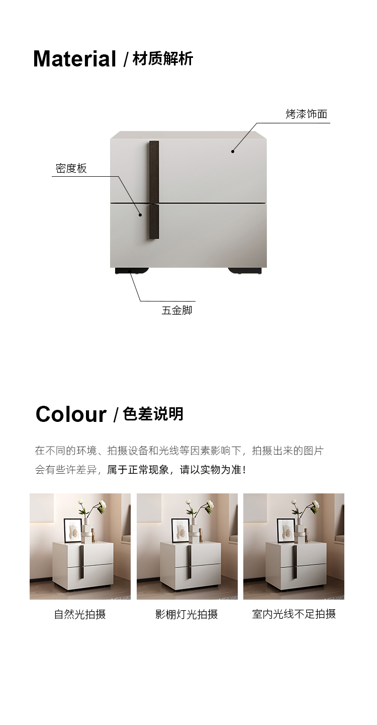 帝幔佧 现代 碳素钢脚+密度板喷漆 床头柜1个¥1376