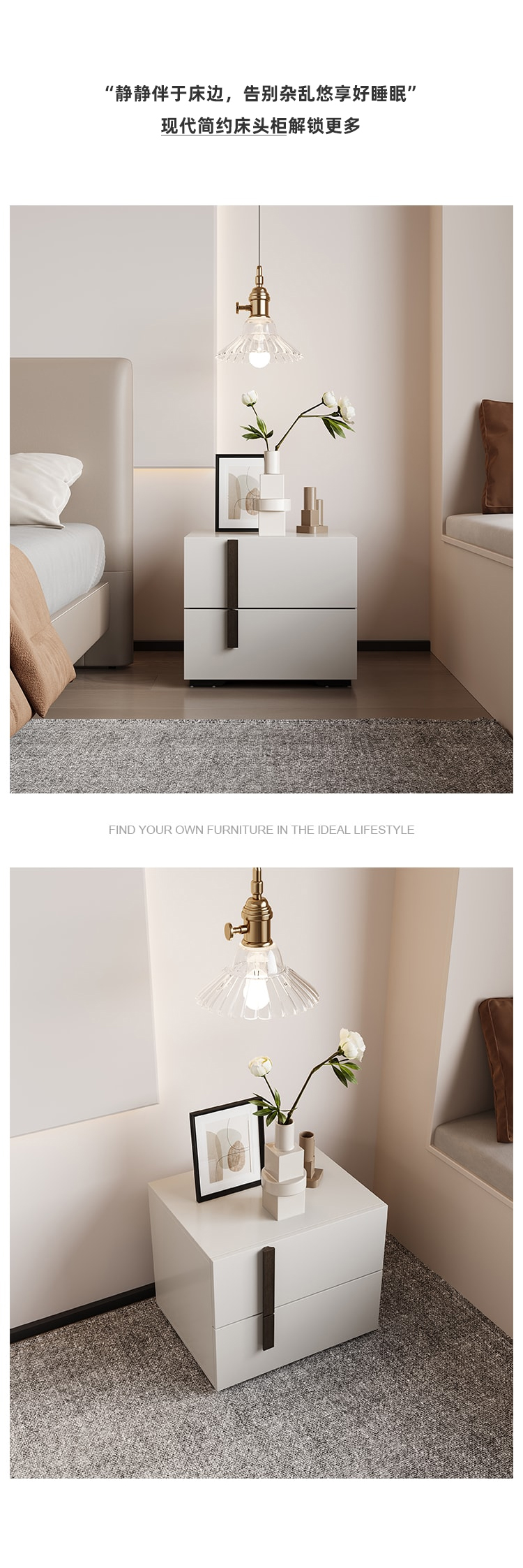 帝幔佧 现代 密度板喷漆+岩板 床头柜1个¥1038