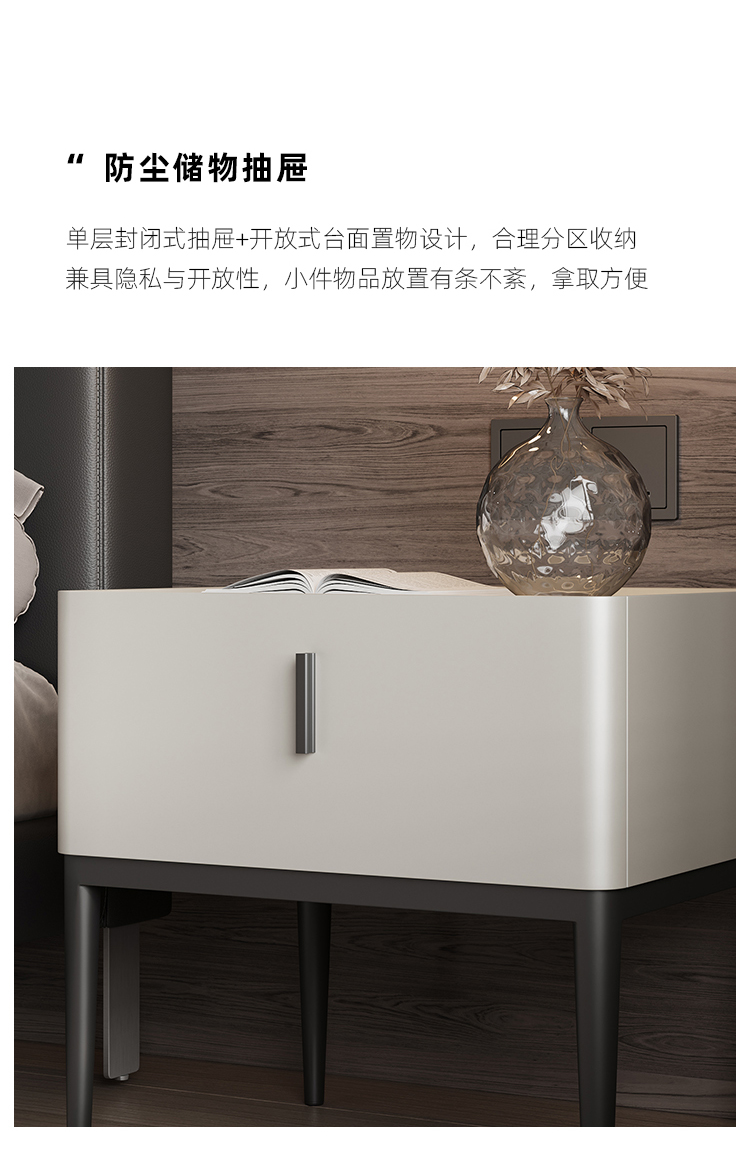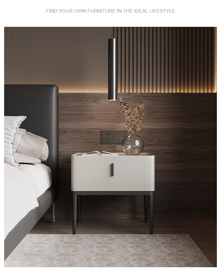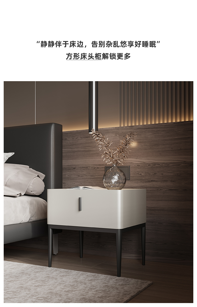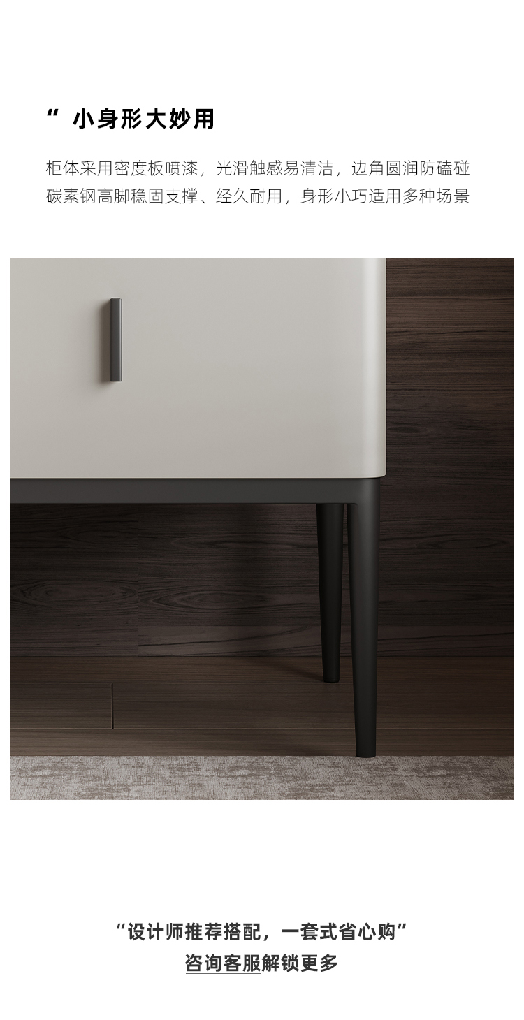 洛萨 极简 密度板烤漆+碳素钢脚 床头柜1个