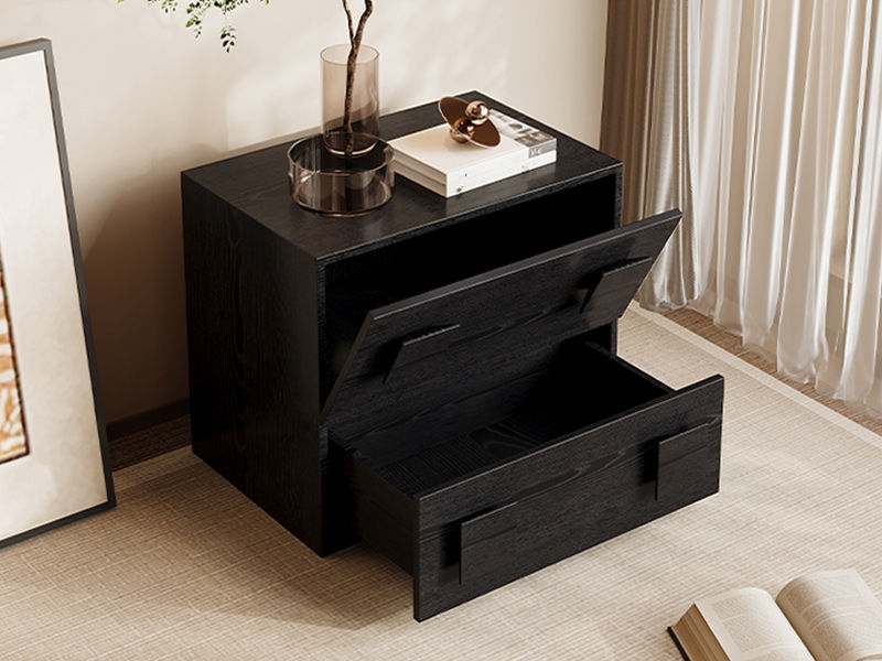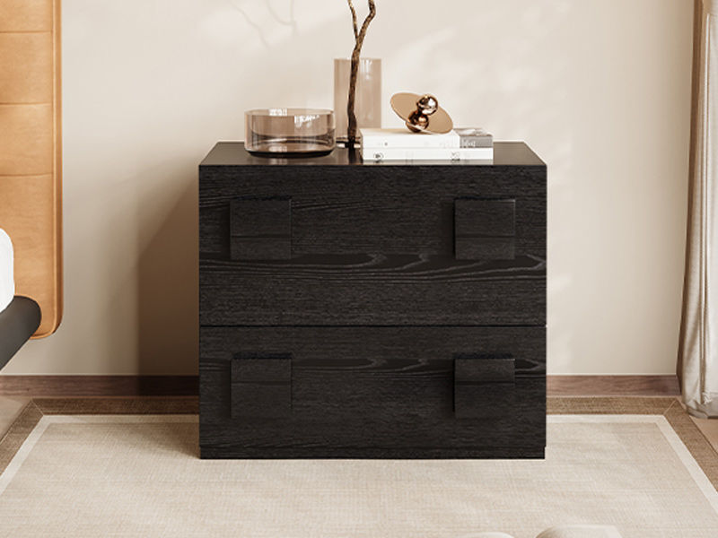 贝斯solo 设计师 网红 极简 烟熏木皮+实木多层板 床头柜1个¥2157