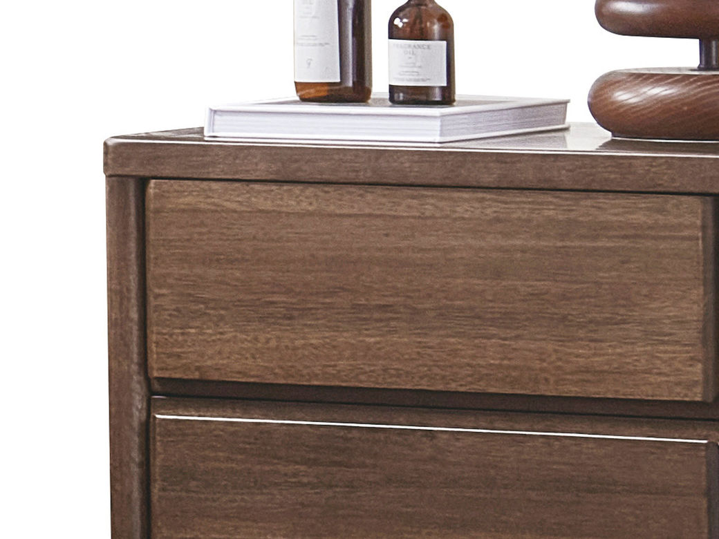 山止 新中式 橡胶木+实木多层板贴皮+铜色五金 紫檀色 床头柜¥1288
