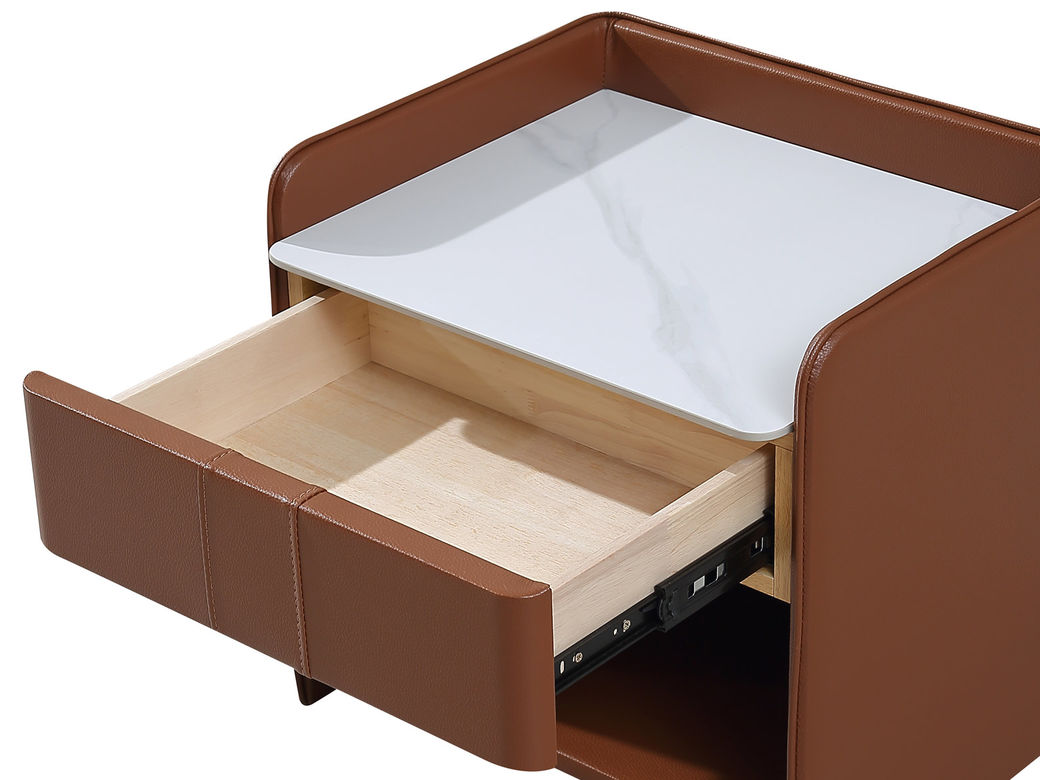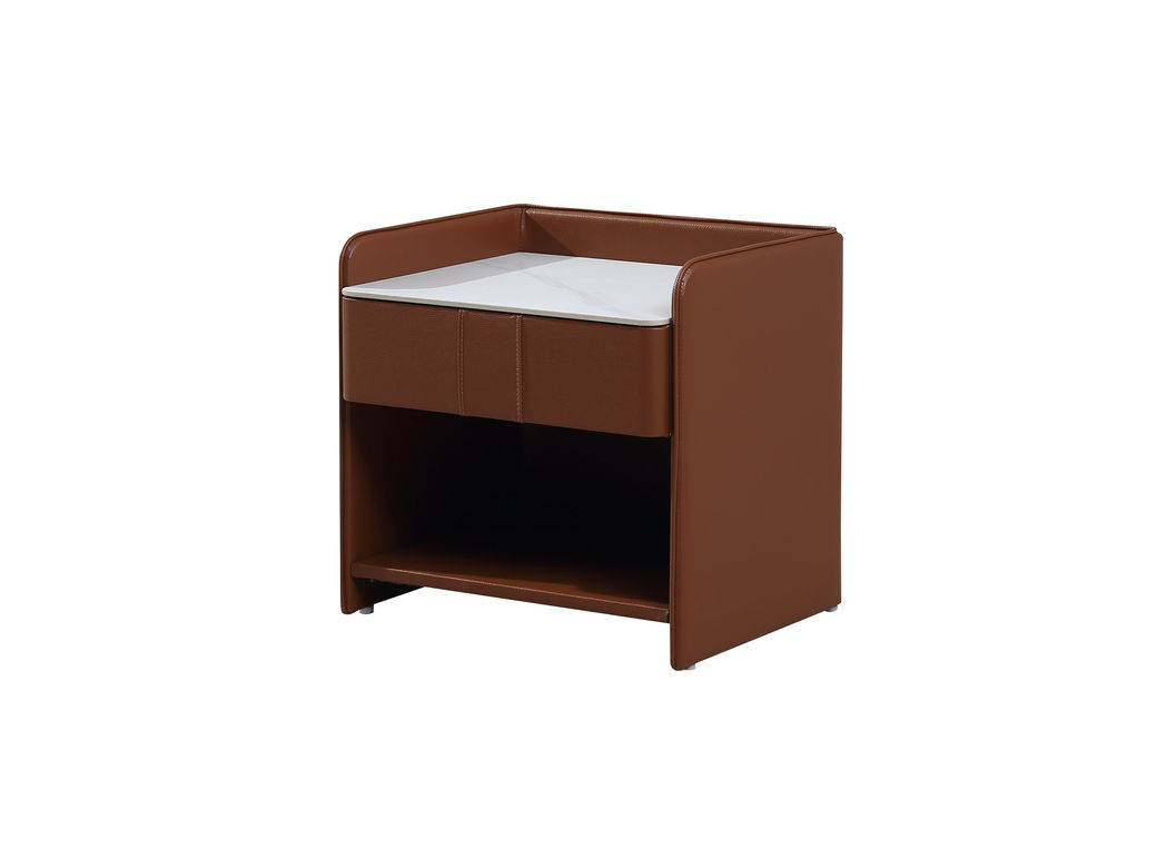 皇朝家居 现代 扪皮+岩板+金属脚 方形 床头柜1个