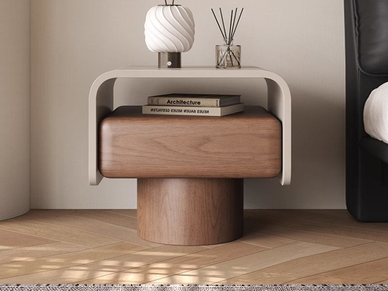 维利品尚 现代简约 HDF净醛板材+贴胡桃木饰面+环保烤漆+落叶松抽屉 床头柜