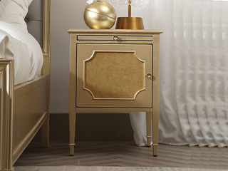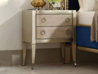 艾美侈 美式 榉木+实木多层板+抽屉面板P2级环保人造板 银箔金 床头柜1个