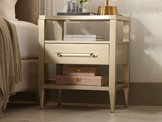美克金典 美式 欧洲进口榉木+实木多层板+静音缓冲导轨 米白+描金 床头柜1个