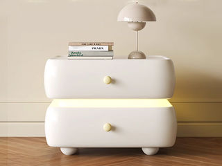 维利品尚 奶油风 扪优质超纤皮+全实木内架+落叶松抽屉+智能LED灯 床头柜1个