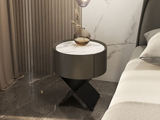 缔造 极简 岩板面+中纤板贴白蜡木皮做碳灰色+碳素钢喷哑黑色 碳灰 床头柜1个