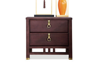 山止 新中式 橡胶木+实木多层板贴皮+铜色五金 紫檀色 床头柜