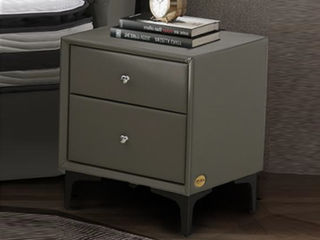 CBD家居 现代简约 仿皮TE97+板木框架 TE97镍灰 方形床头柜1个