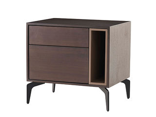 缔造 极简 密度E1板烟熏色木皮配不锈钢黑钛脚 烟熏色 床头柜1个
