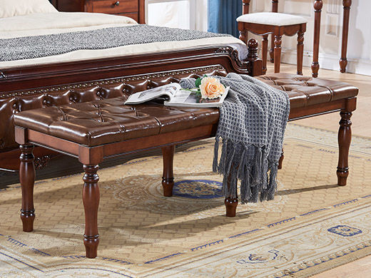 多纳宝 美式 美式 超纤仿真皮+高密度回弹海绵+进口实木 1.5米床尾凳条凳