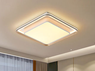 亚朵 现代简约 主材铁艺+辅材硅胶条 全白 现代卧室31w方形三色吸顶灯