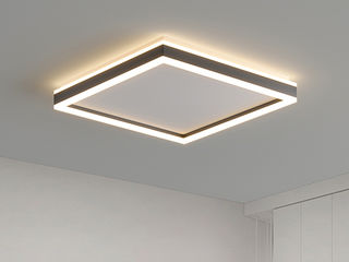 亚朵 现代简约 主材铝材+辅材铁艺亚克力 黑色 现代卧室32w方形三色吸顶灯