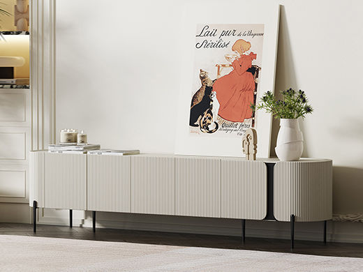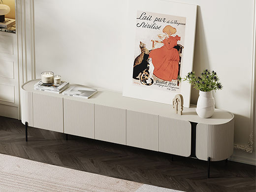 鹿屿 奶油风 灰白色烤漆(环保中纤板E1板)+不锈钢黑钛金属脚 2.35米电视柜