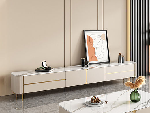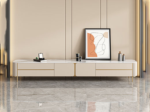 B系优选 现代简约 亮光岩板+亮光烤漆柜子 钛金五金底架+实木抽屉 卡其色 2米电视柜(未开电源孔)