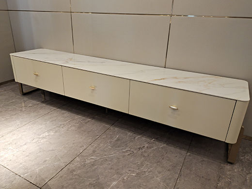 拜洛迪 轻奢 香槟金不锈钢+岩板面+板木结合 浅卡其 2.2米 电视柜¥9451