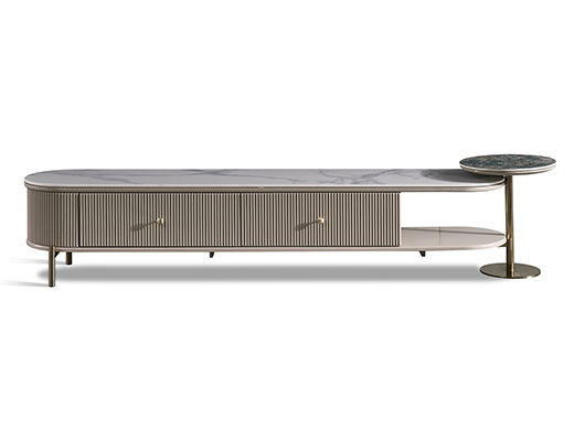 拜洛迪 轻奢 板木结合+奢石岩板 米色 2米电视柜¥7056
