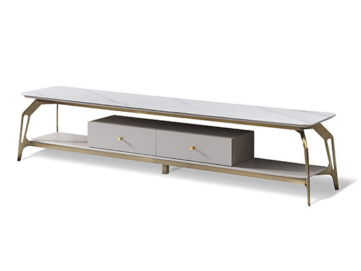 拜洛迪 轻奢 香槟金不锈钢+岩板面+板木结合 浅卡其 2.2米 电视柜¥9451