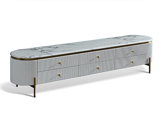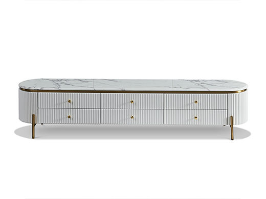 拜洛迪 轻奢 板木结合配拉丝钛金不锈钢 大理石面 白色 电视柜